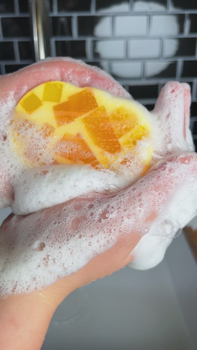 WAS DU ERHÄLTST: Wir schneiden dein bestelltes Stück Seife, direkt nach Eingang deiner Bestellung, ganz frisch vom großen Block, ähnlich wie bei Käse oder Kuchen. Du kannst dir daher sicher sein, daß alle pflegenden Öle und die tollen Düfte in deinem Stück Seife, vollständig erhalten und ganz frisch sind. Der Preis bezieht sich auf ein Stück Seife (eine Scheibe) ca. 2cm dick, bzw. ca. 100g schwer.