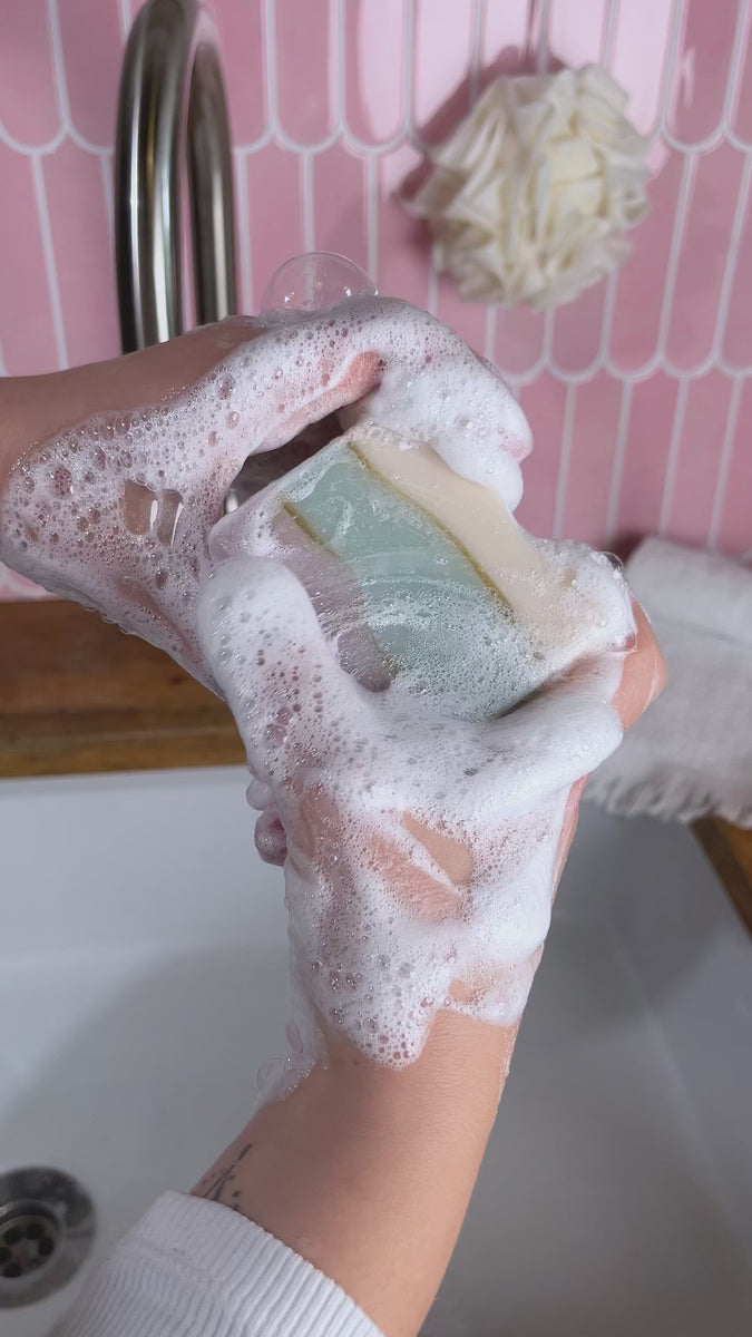 Die zarte Textur dieser Seife fühlt sich auf der Haut an wie ein sanfter, aber kräftiger Kuss der Wellen. Sie schäumt cremig und lässt sich leicht verteilen, um deine Haut den ganzen Tag über mit Feuchtigkeit zu versorgen und sie geschmeidig zu halten.