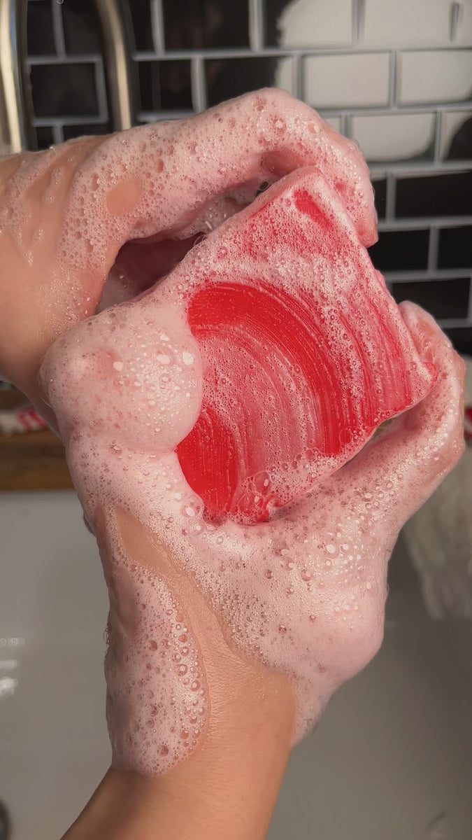 Diese kaltgerührte und handgeschöpfte Naturseife duftet intensiv fruchtig-süß nach frischem Granatapfel und ist geeignet für dich, wenn du trockene, sensible oder normale Haut hast.