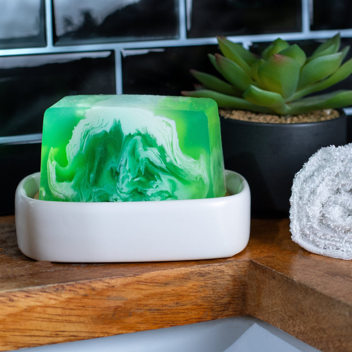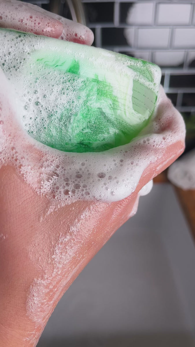 Frische Bergminze, ein kostbarer Hüter unserer Natur und ein einzigartiges Dufterlebnis. 🌱 Die aromatischen Öle aus den Blättern verleihen deiner Haut und deinem Badezimmer eine frische Note. Mein natürliches Glycerin speichert die Feuchtigkeit in deiner Haut, so dass sie wunderbar zart und weich bleibt. Mein besonderes Aussehen macht mich zum absoluten Hingucker in deinem Badezimmer. Überzeuge dich selbst und erlebe ein cremig, sanftes Duscherlebnis und ein einzigartiges Hautgefühl!