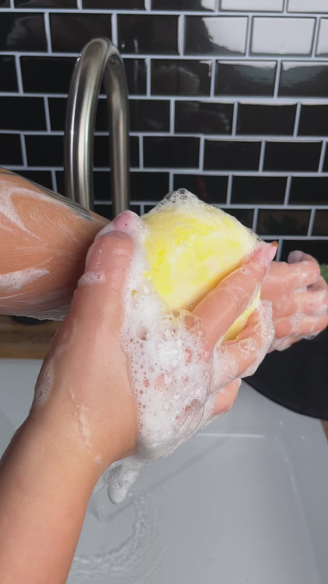Halte deinen luxuriösen Body Bar - Seifenschwamm unter fließendes Wasser, um Seife und die pflegende Butter zu aktivieren. Massiere deine Haut sanft damit, um sie zu peelen und zu reinigen. Nach dem Gebrauch den Schwamm ausspülen. Fertig!